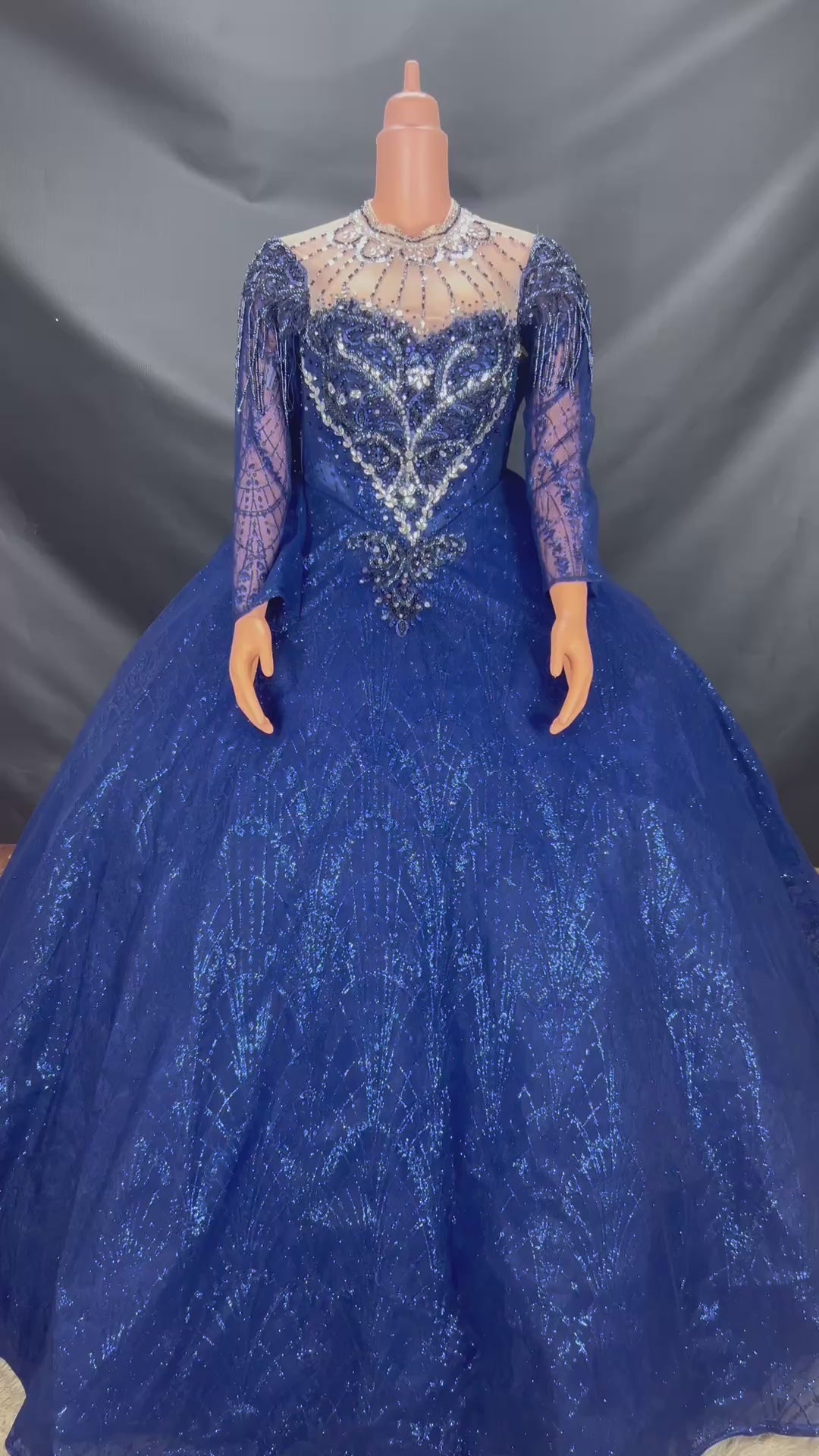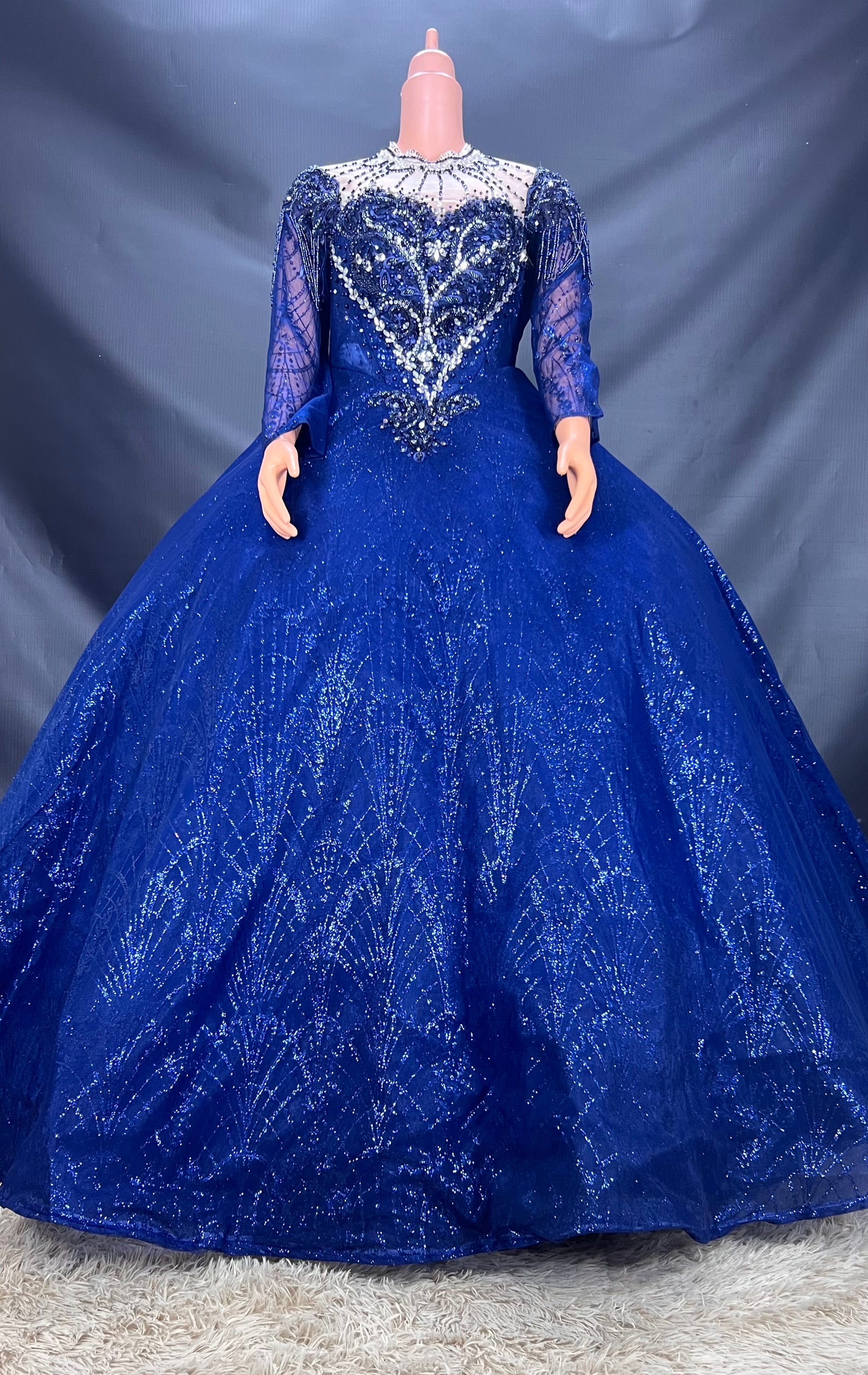 | The product is a stunning blue wedding dress in size XL, featuring a ball gown style with a corset and zipper back closure. This elegant dress has long sleeves and a beautiful ball gown/duchess silhouette, making it perfect for a formal occasion like a wedding. The dress is designed with a regular size type in mind, ensuring a comfortable and flattering fit for the bride. |